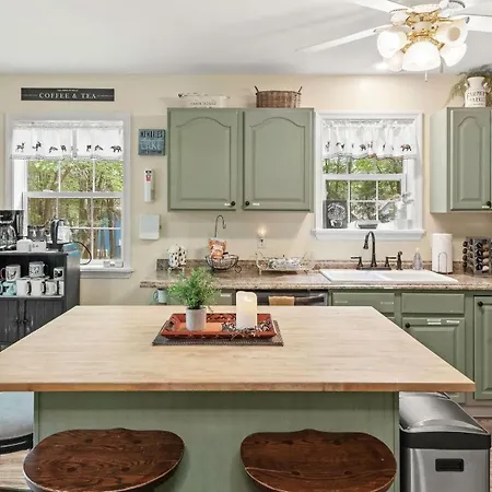 En la villa Ridge Retreat By Avantstay Game Room Covered Porch Fire Pit encontrará una cocina con tetera, nevera y placa de cocina.